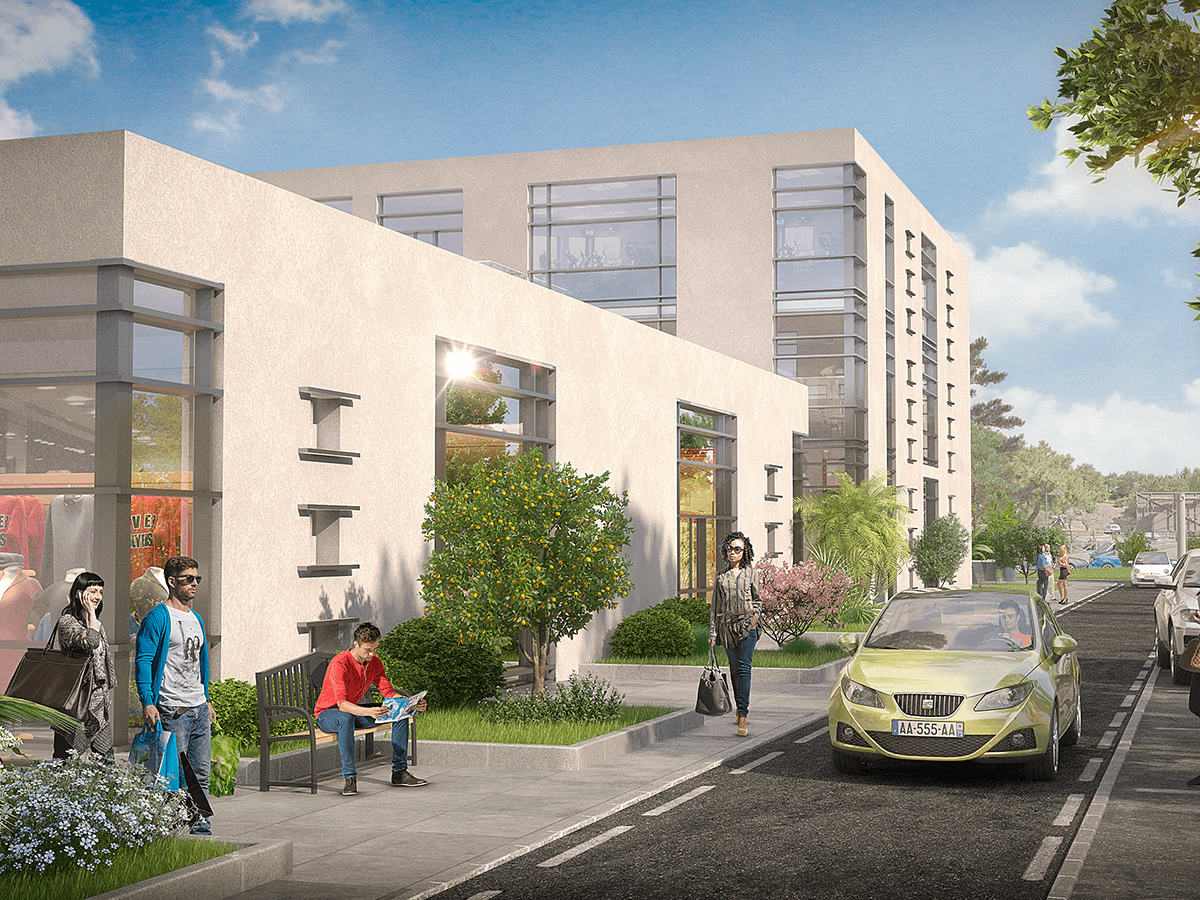 Le programme regroupe 4 bâtiments à usage de commerces et de bureaux bénéficiant d’une architecture soignée, de plusieurs places de stationnement, et d’un emplacement N°1.